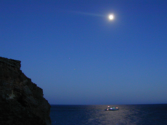 Moonlit ferry, from our balcony in the Ilingas Pension